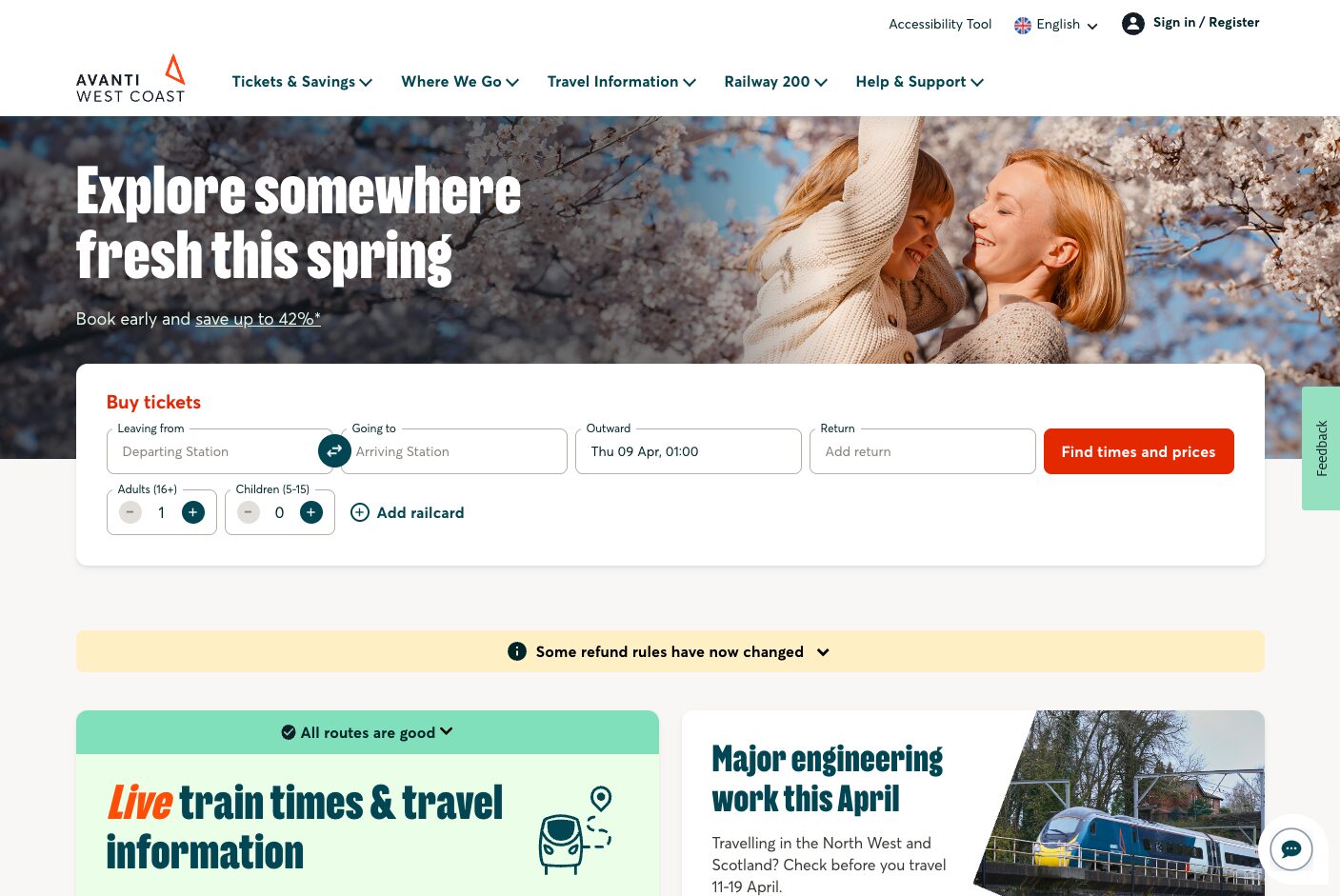 Avanti West Coastは、ロンドンのユーストン駅から西海岸本線を北上し、バーミンガム、マンチェスター、リヴァプール、グラスゴーなどを結ぶ高速鉄道サービス。内陸の工業都市や丘陵地帯を通り、英国の経済・交通を支える重要な幹線ルートとなっている。
