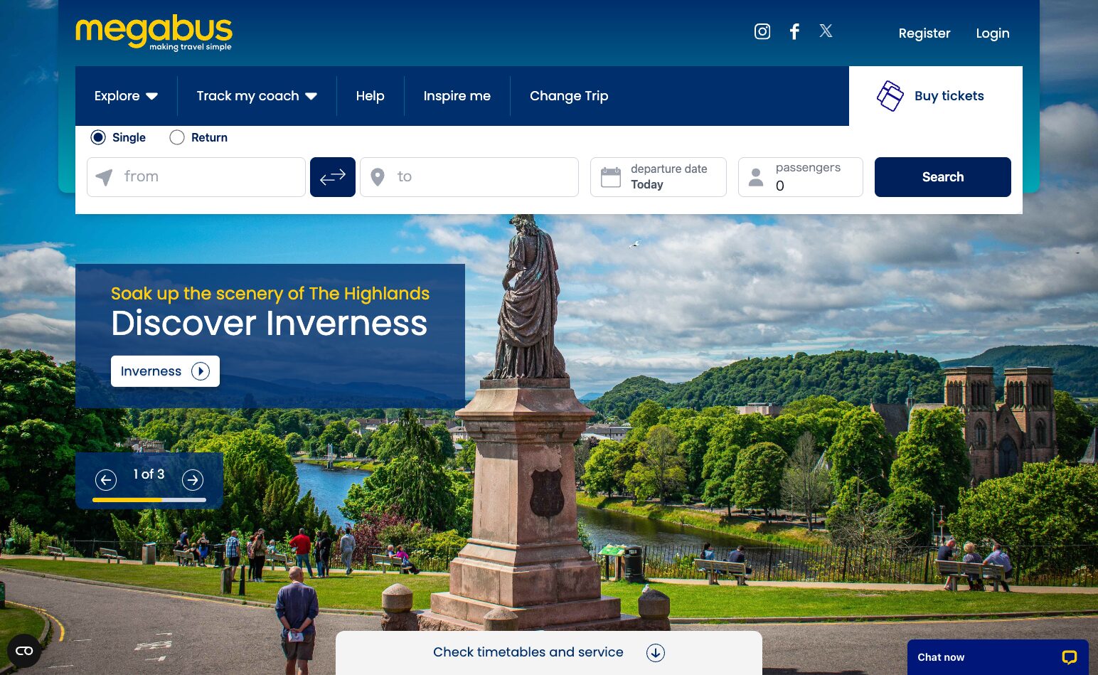 格安の長距離バス会社。早期予約で1£もあり、学生やバックパッカーにも人気。