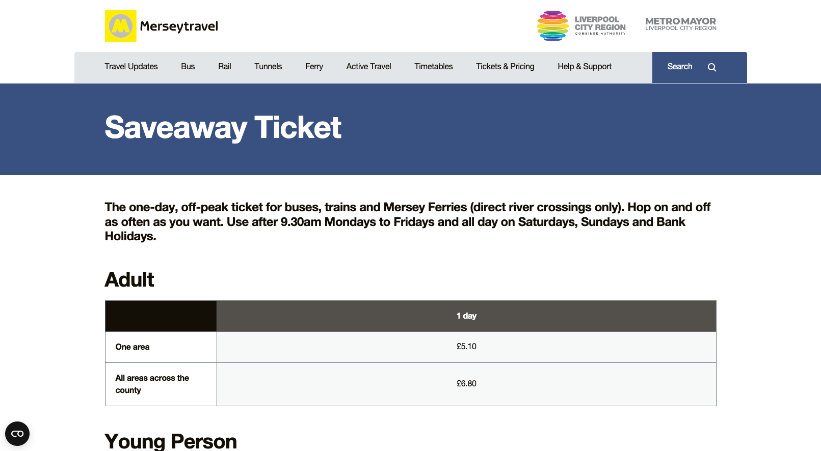 リヴァプールでは、Merseytravelが発行する1日乗車券(Saveawayなど)があります。